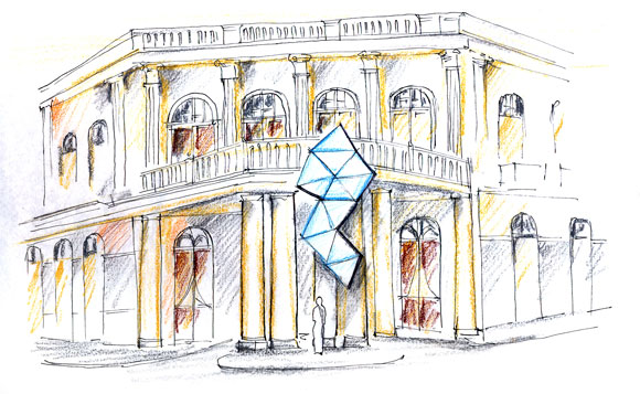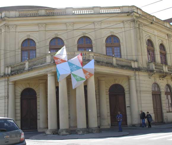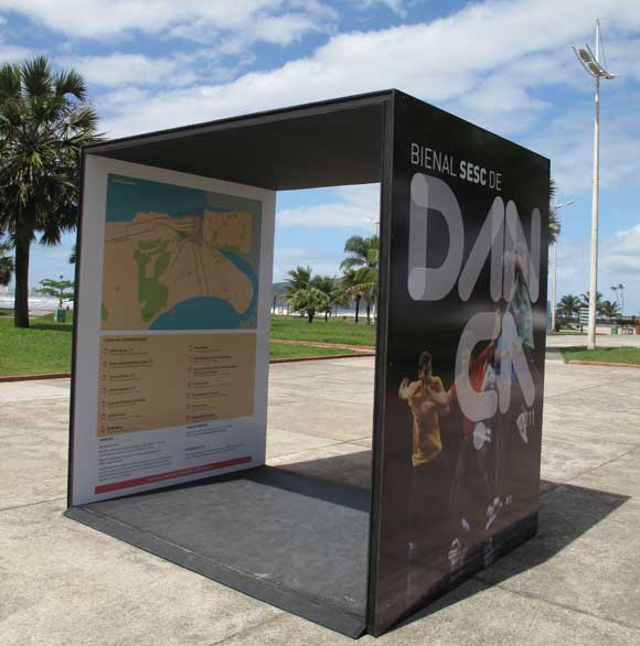 É hoje! Começa a Bienal de Dança e as fachadas dos espaços de apresentações em Santos estão tomadas por pirâmides em acrílico.